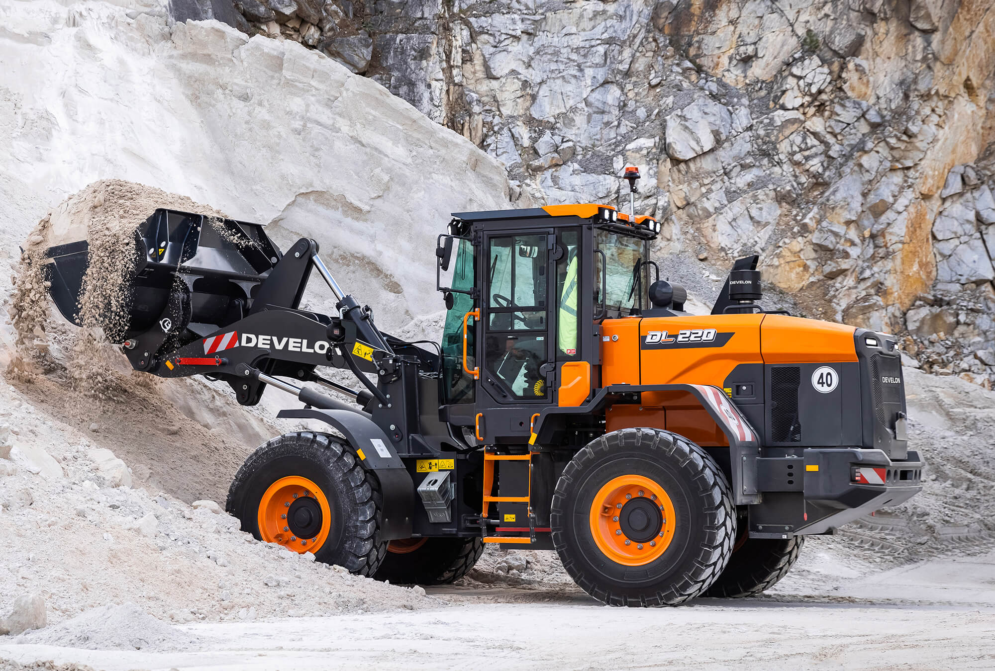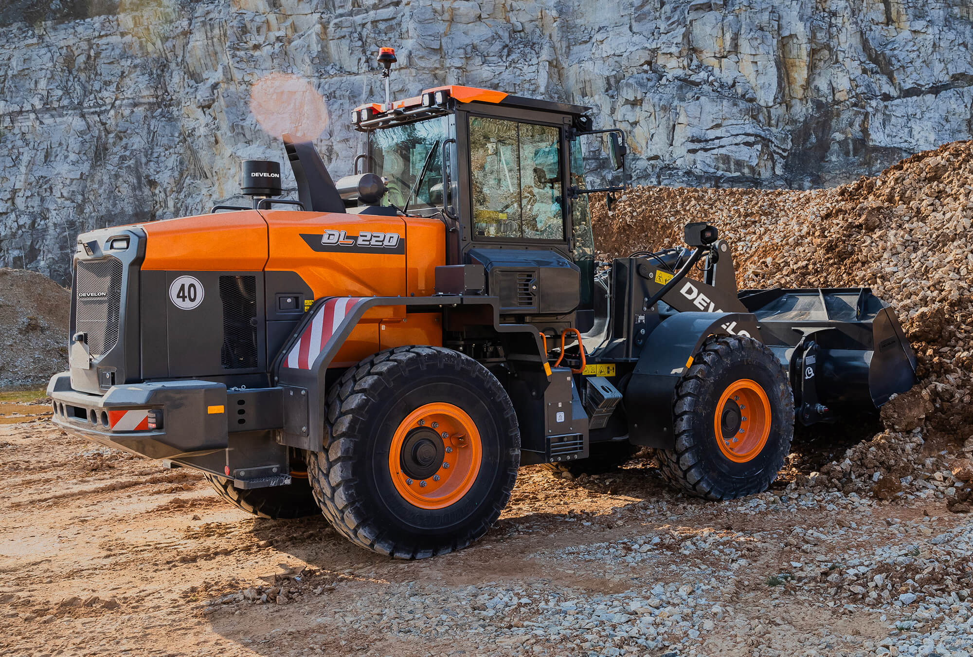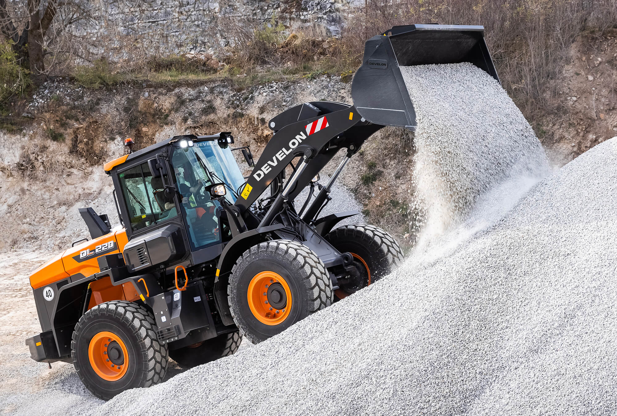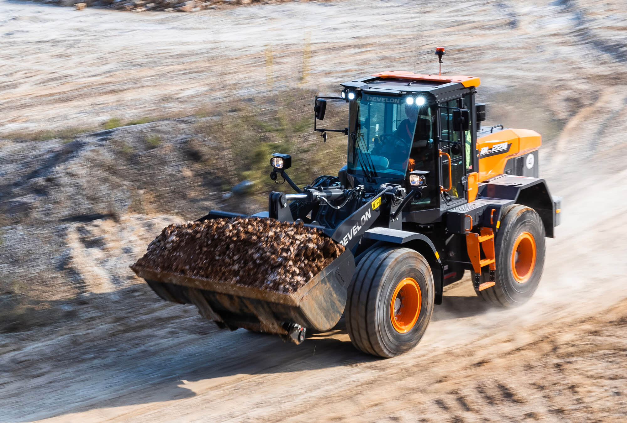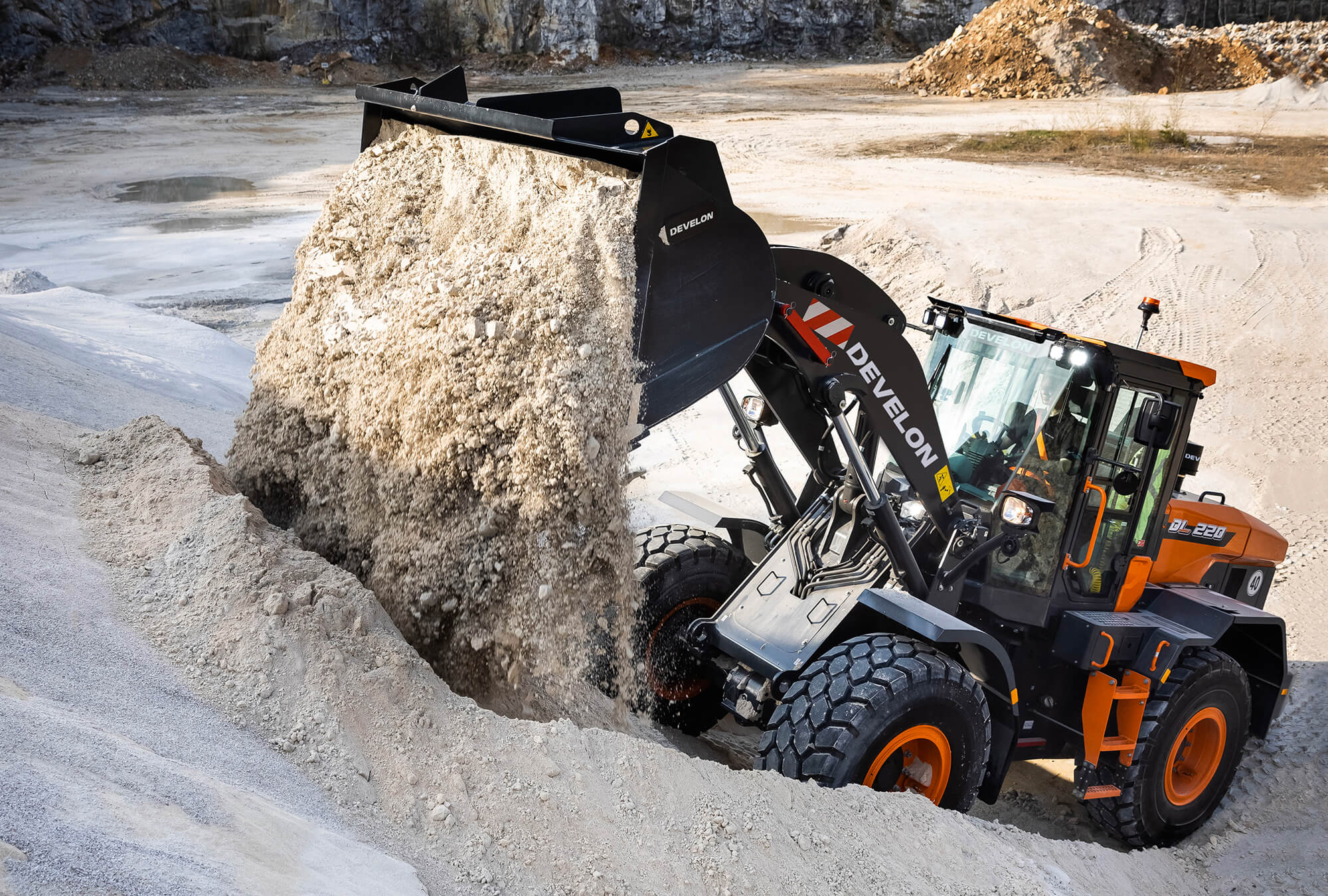 Boost your productivity with the new DL220-7 Develon wheel loader. Exceptional power – combined with the finest workmanship – results in a machine that performs at the highest level.