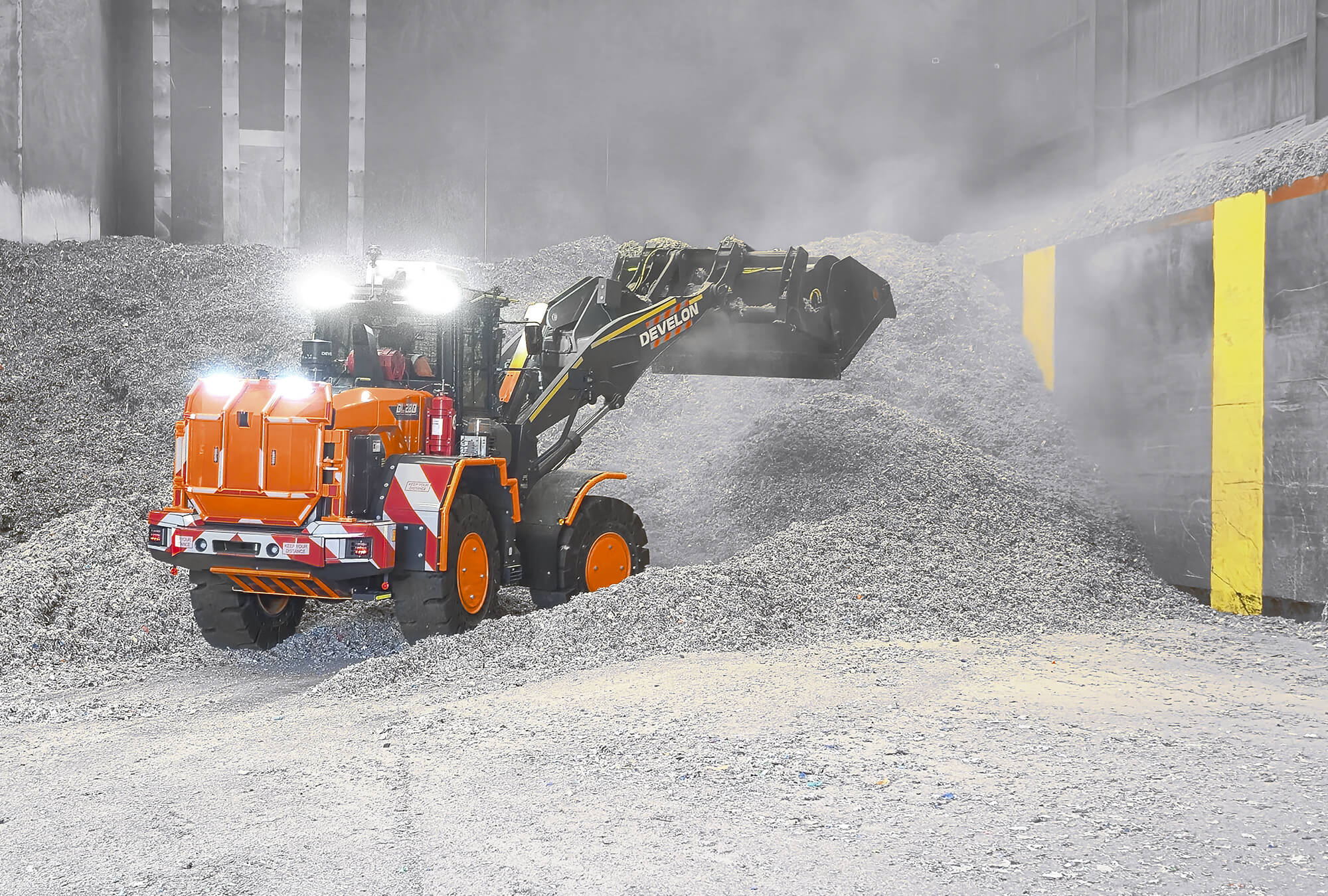 Maximize efficiency with the Develon Waste Loader and its impressive super high lift arm — designed for faster, easier loading of even the largest trucks.