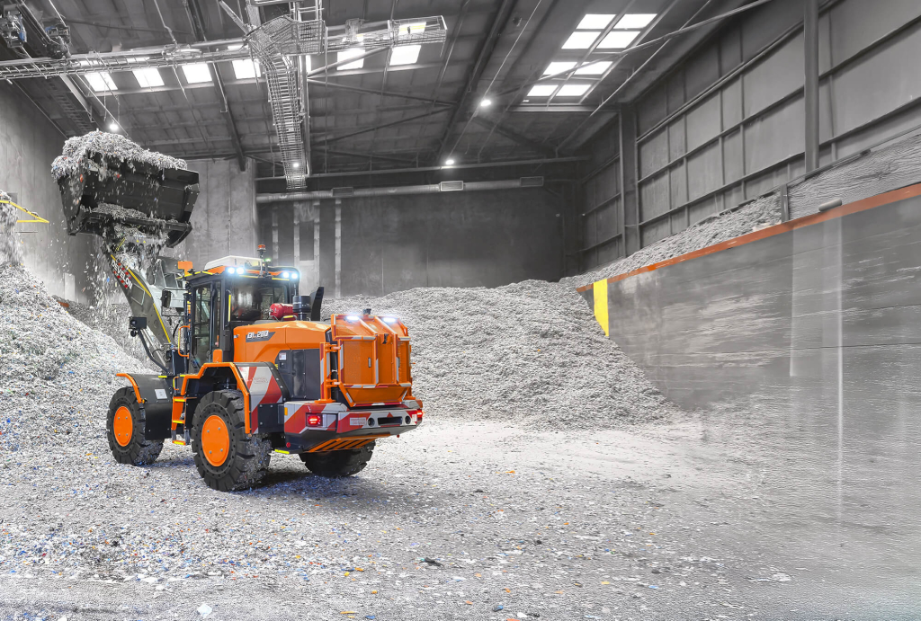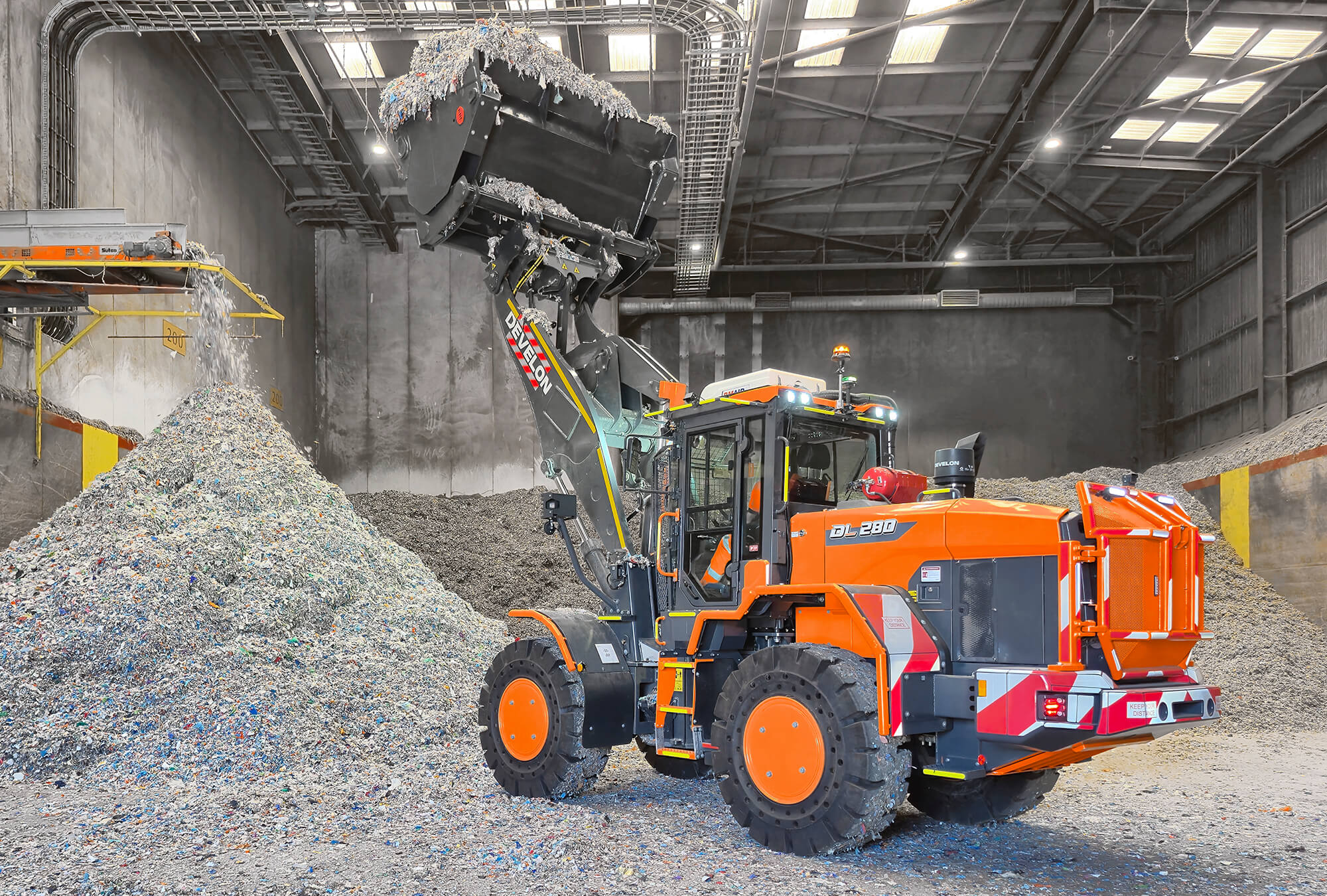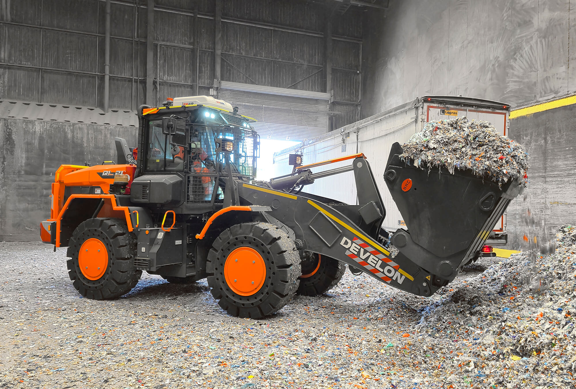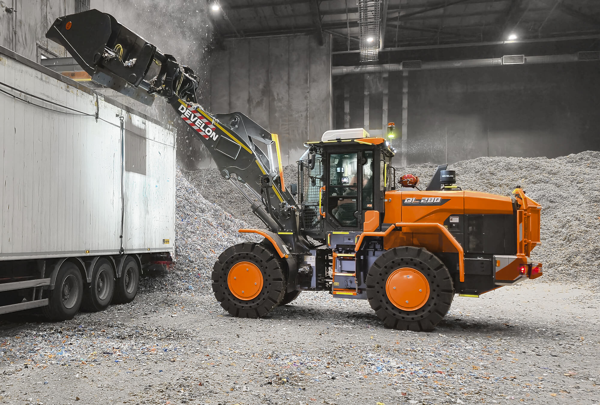 Maximize efficiency with the Develon Waste Loader and its impressive super high lift arm — designed for faster, easier loading of even the largest trucks.