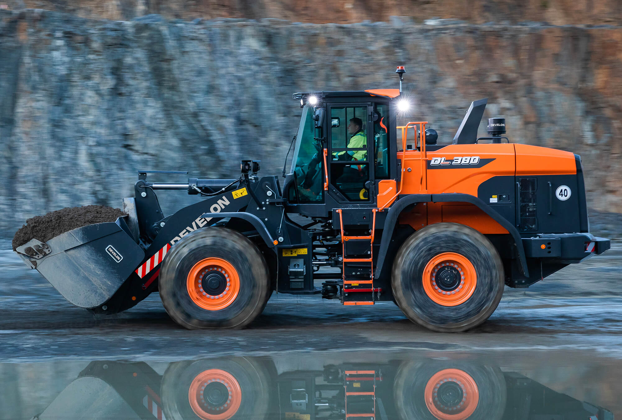 Boost your productivity with the new DL380-7 Develon wheel loaders.