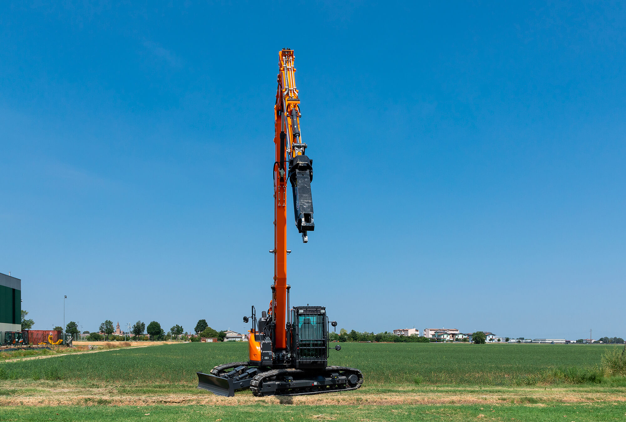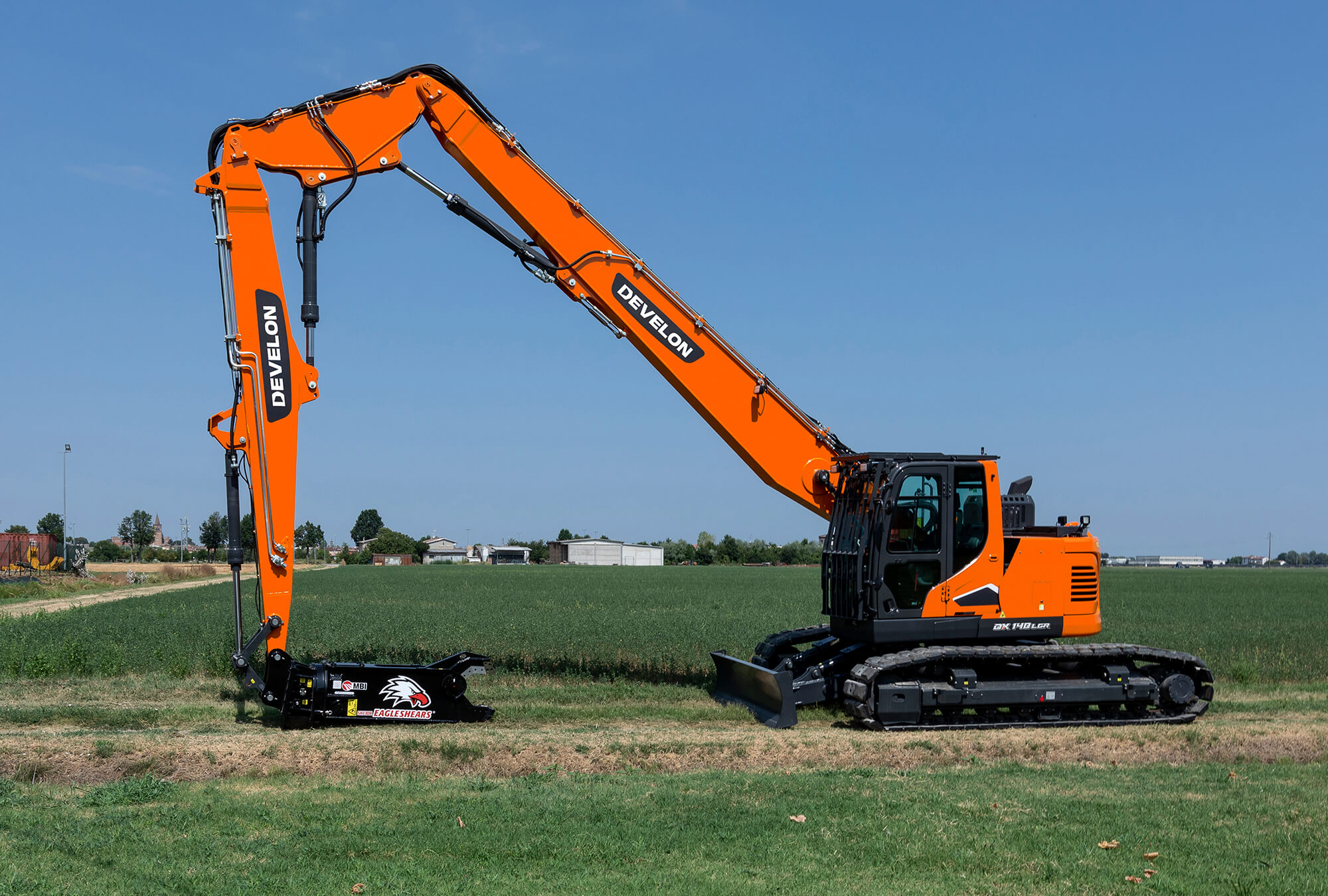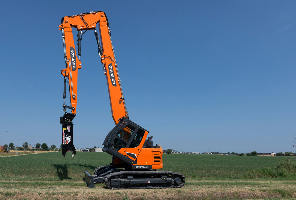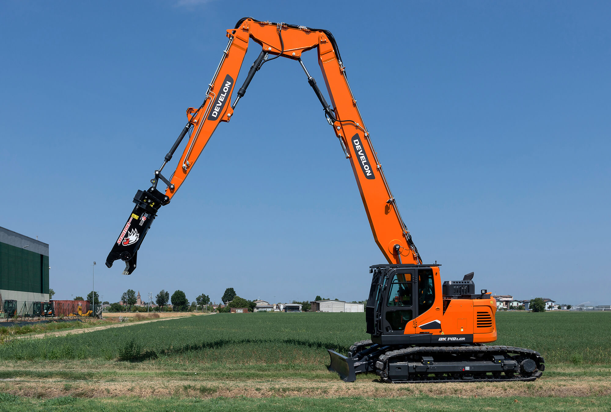 DX140RDM-7 can be equipped with either monolithic boom or modular boom design. Hydraulic lock mechanism provide customers with a complete, flexible solution that allows them to use the same excavator for applications on-site in addition to demolition.