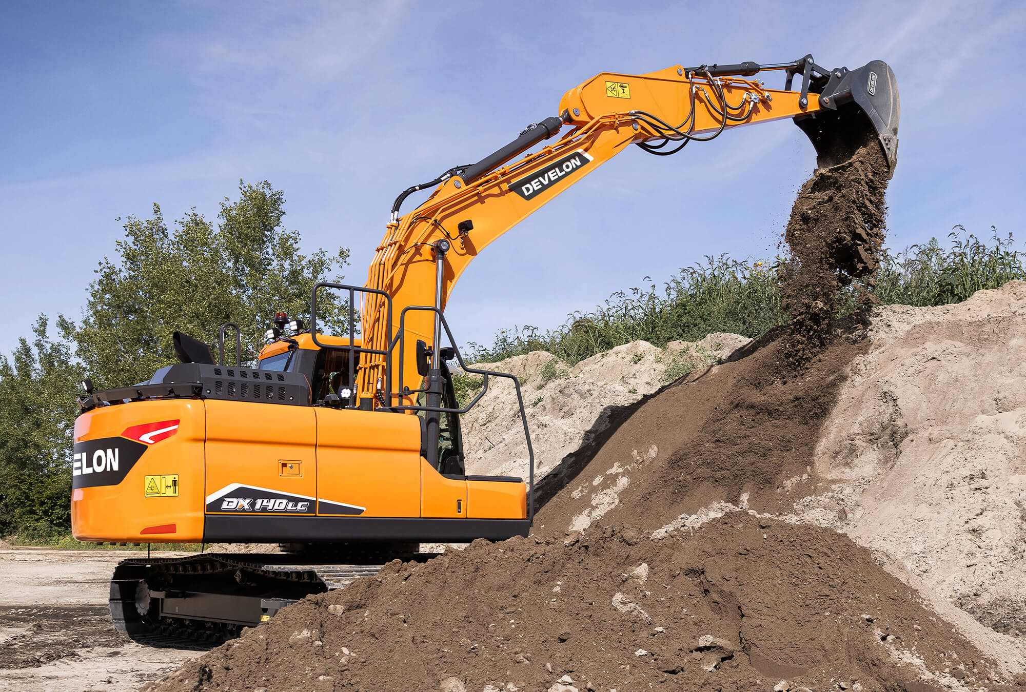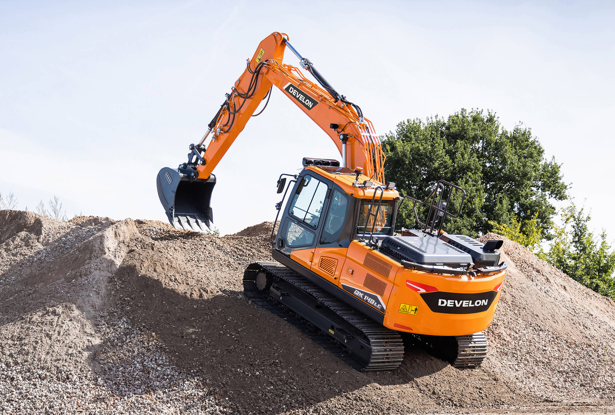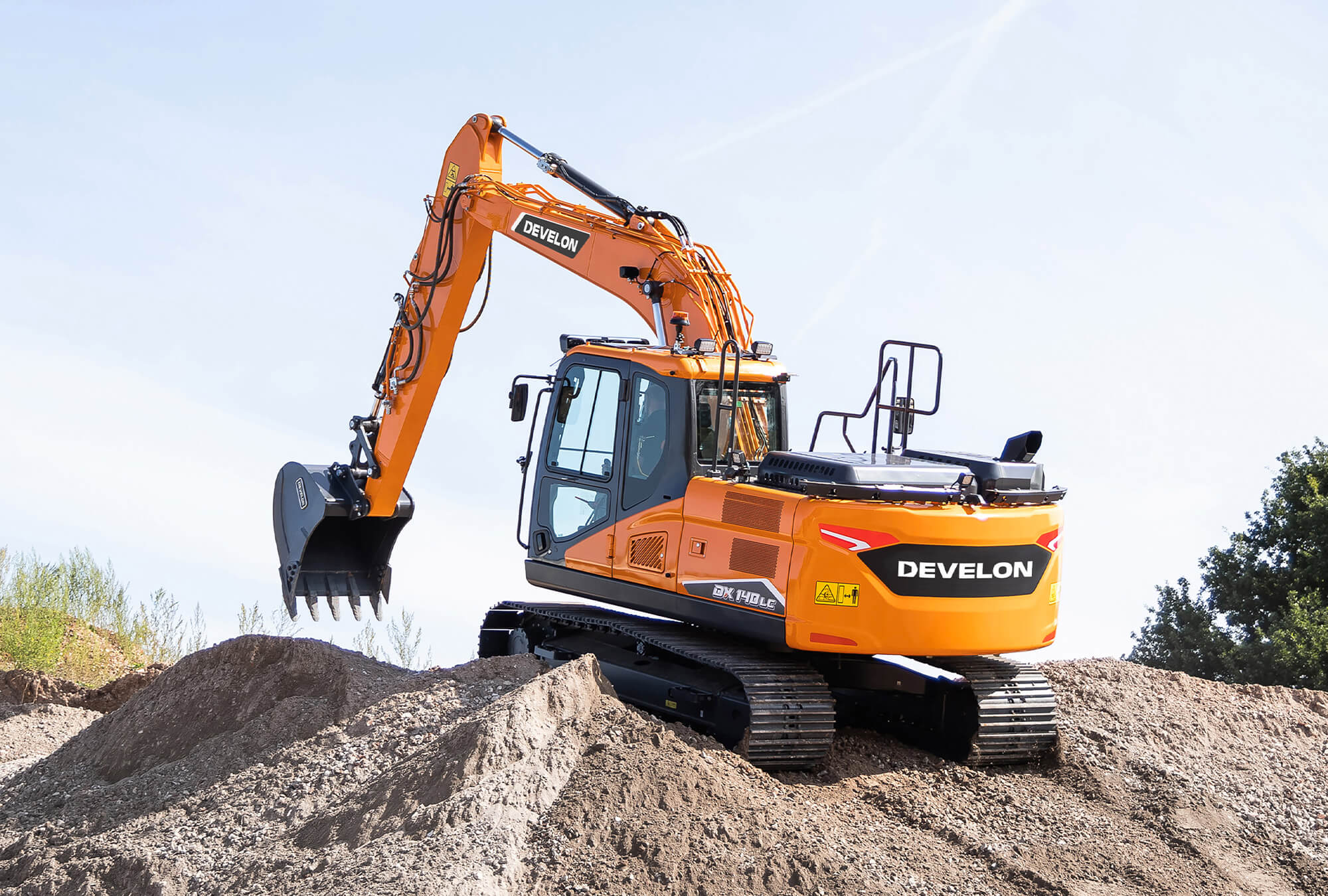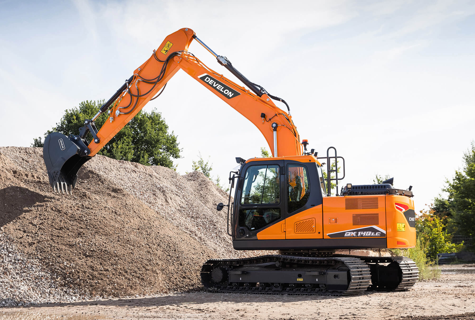 Die neuen Raupenmodelle DX140LC-7 mit 14,6 Tonnen und DX140LCR-7 mit 15,9 Tonnen. Beide Bagger werden jetzt vom Stage-V-konformen Develon D34 4-Zylinder-Dieselmotor angetrieben, der eine Leistung von 87,2 kW (117 PS) bei 2 000 U/min liefert.