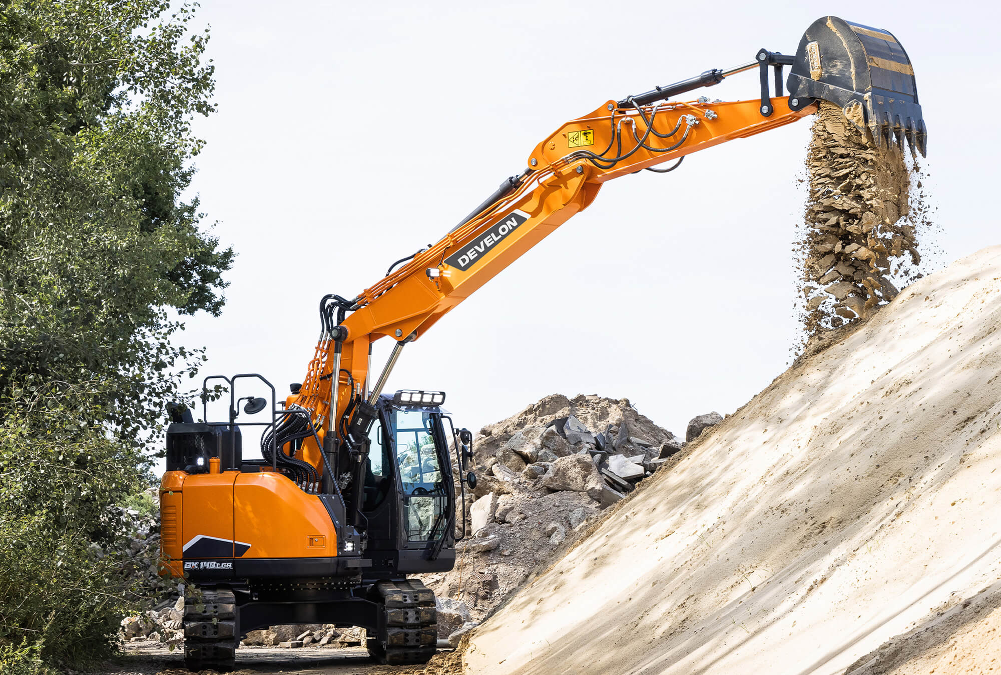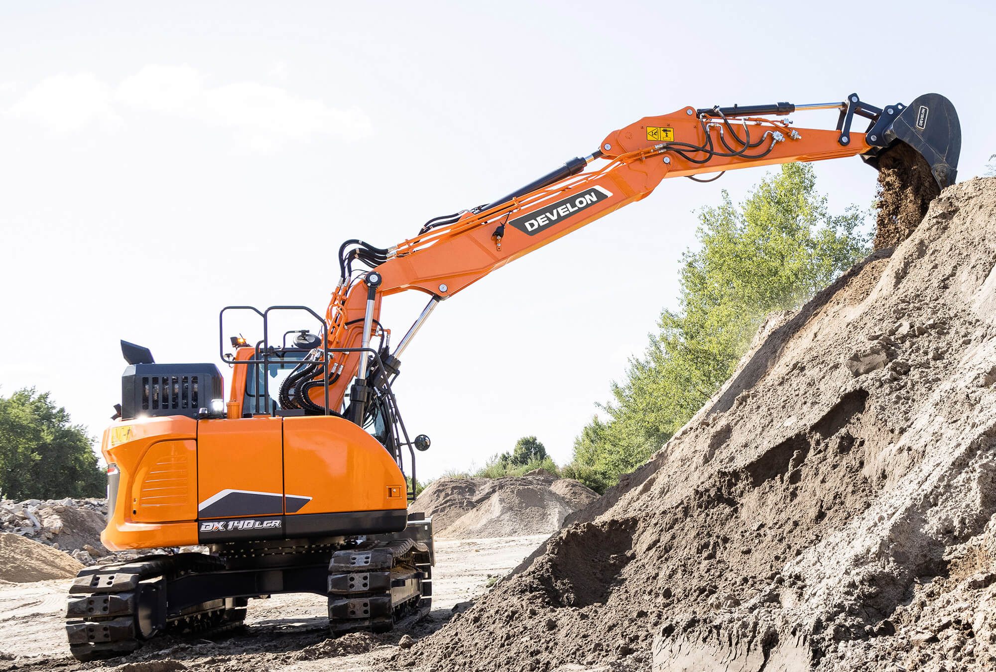 Mit dem Develon-Bagger DX140LCR-7 heben Sie Ihr Geschäft auf ein neues Niveau. Der DX140LCR-7 bietet die bestmögliche Balance zwischen reduziertem Heckschwenkradius und Stabilität. Einer der kleinsten Schwenkradien auf dem Markt mit der Stabilität eines konventionellen Baggers.