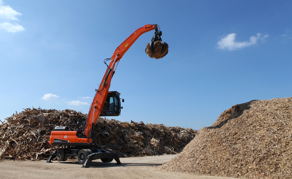 Der neue DX230WMH-7 ist ein Stufe V-konformer 23-t-Umschlagbagger für den Einsatz in den Bereichen Feststoffabfall, Recycling, Abriss und Forstwirtschaft.