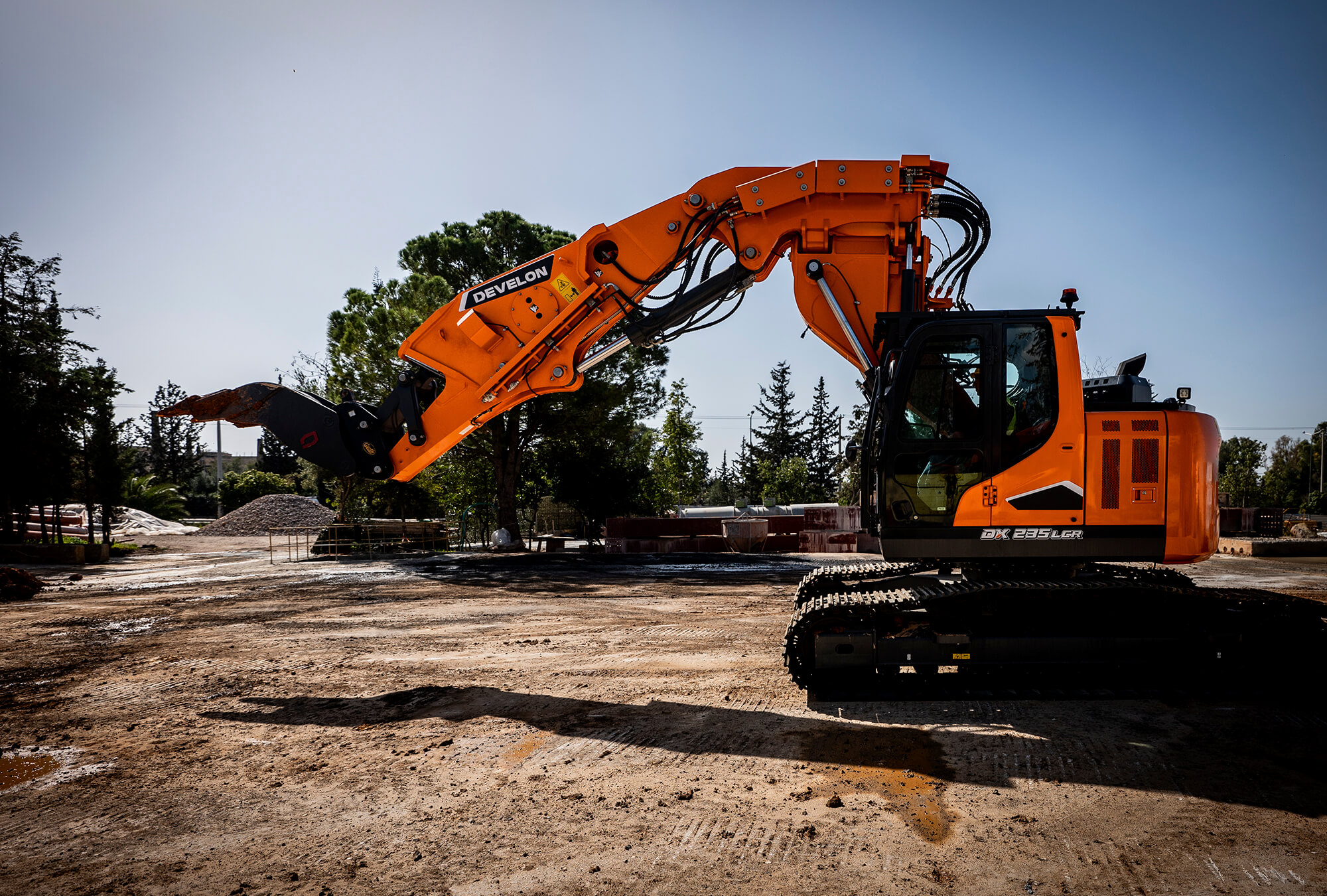 Der Develon-Tunnelbagger DX245RTF wurde speziell für die anspruchsvollen Anforderungen des unterirdischen Bauens entwickelt. Er arbeitet effizient in engen Tunneln, wobei sowohl die Aushubleistung als auch die Sicherheit im Vordergrund stehen. Dank des aktuellsten Develon-Motors liefert er eine beachtliche Leistung für anspruchsvolle Aufgaben und reduziert gleichzeitig den Kraftstoffverbrauch und die Emissionen. Sein robuster Löffelstiel und Ausleger gewährleisten die Präzision und Stärke, die für jede Aufgabe im Tunnelbau erforderlich sind.