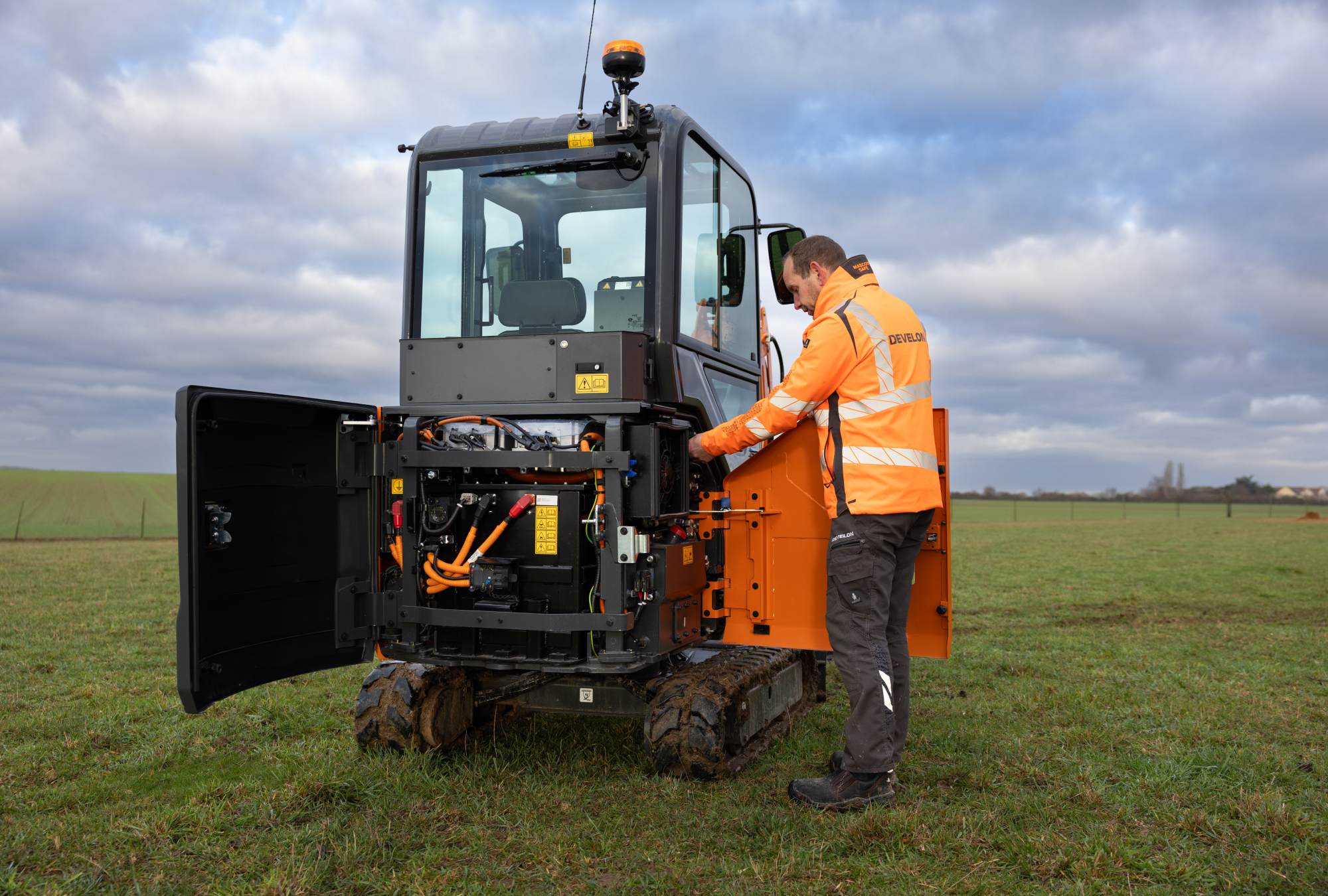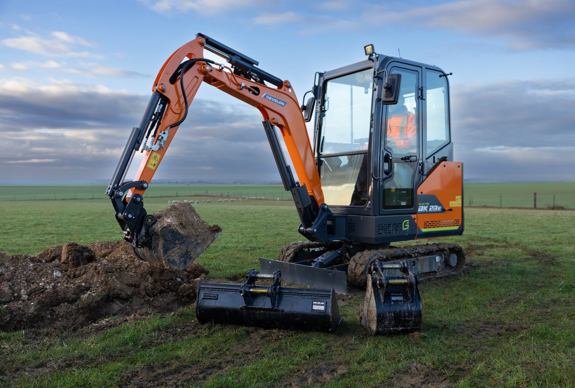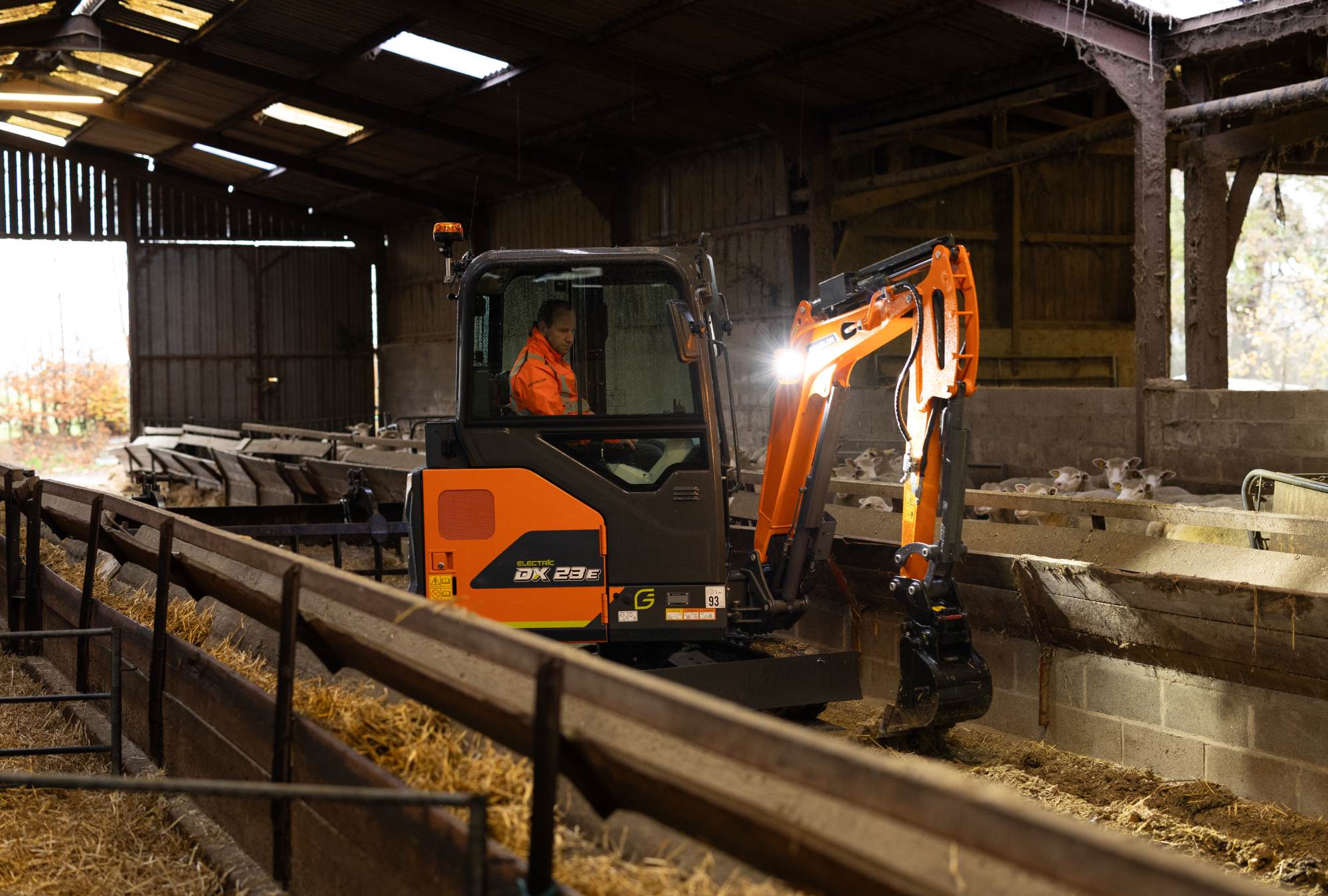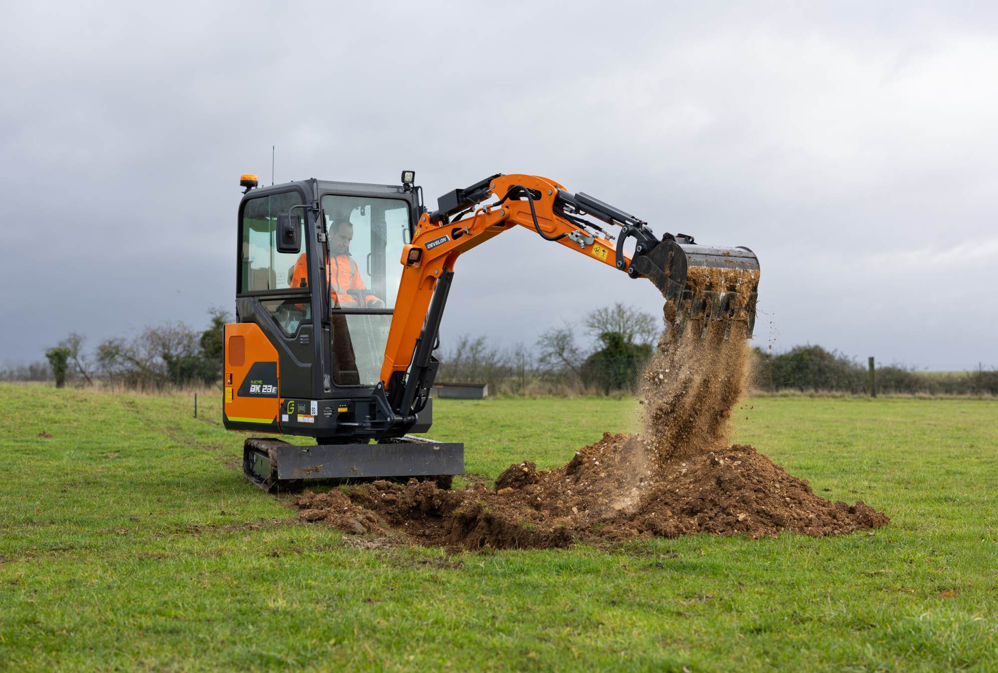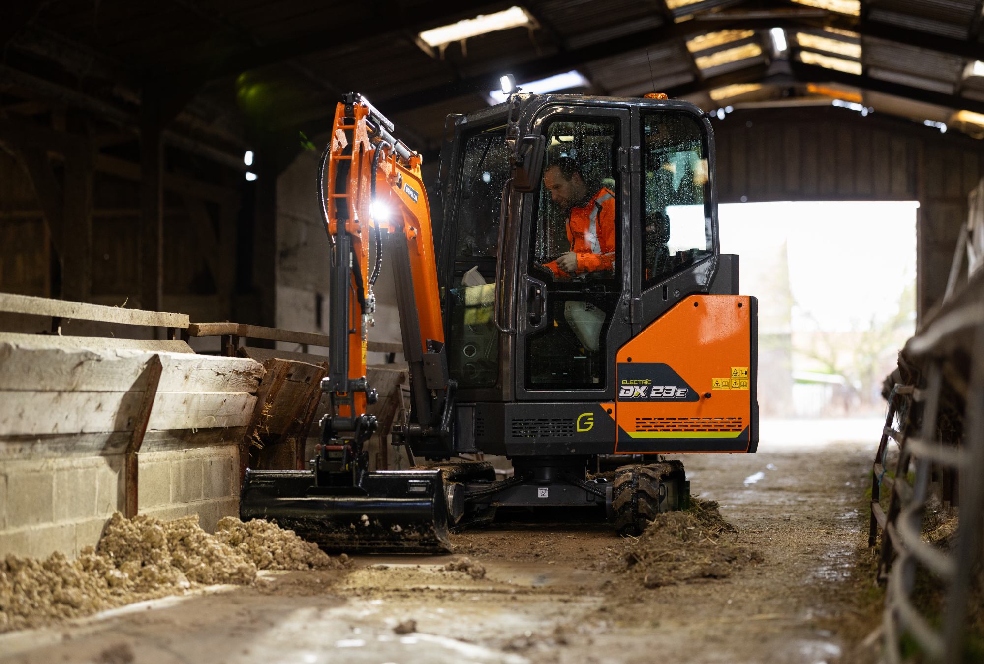 Der DX23E-7 ist der elektrische Minibagger, der den Arbeitstag des Fahrers erleichtert und die Arbeit vorantreibt. Sein erstklassiger Akku ist auf Zuverlässigkeit ausgelegt, liefert außergewöhnliche Leistung und lässt sich schnell wieder aufladen, um Ausfallzeiten zu minimieren. Durch den nahezu geräuschlosen und vibrationsarmen Betrieb eignet sich diese Maschine hervorragend für enge städtische Baustellen und Arbeiten in Innenräumen, wo Lärm und Emissionen eine wichtige Rolle spielen. Dazu kommen die ganztägige Einsatzfähigkeit, flexibles Aufladen für die Einsatzbereitschaft am nächsten Tag und weniger tägliche Wartungsarbeiten – und schon haben Sie Produktivität ohne die üblichen Unterbrechungen.