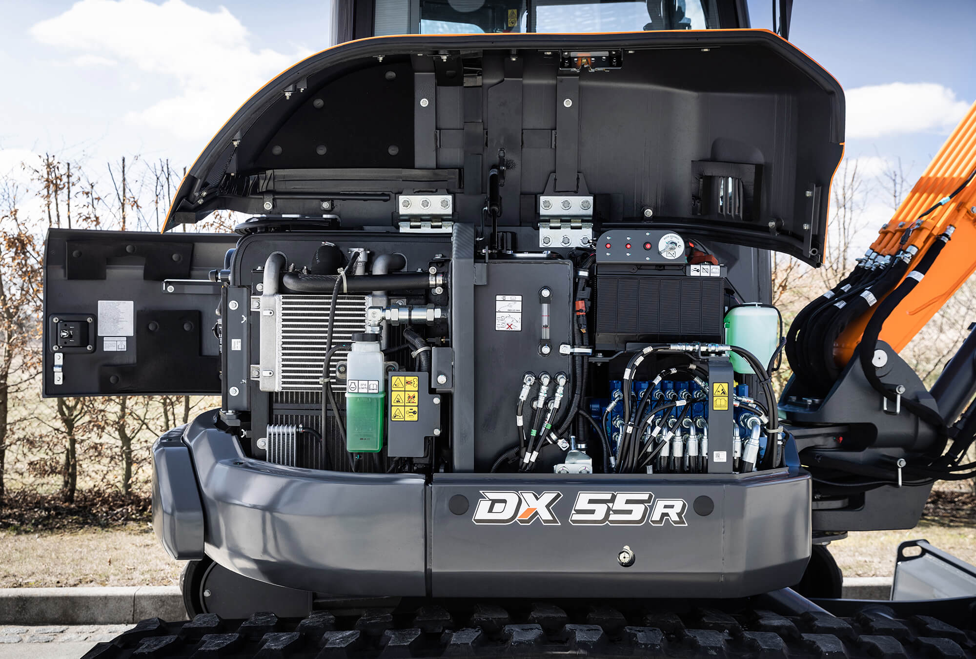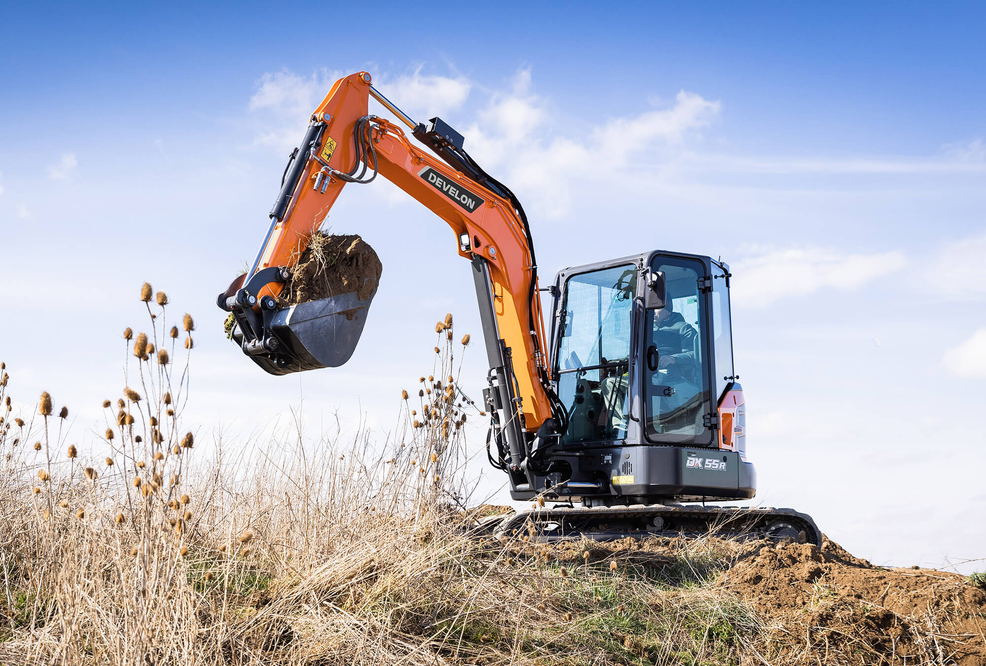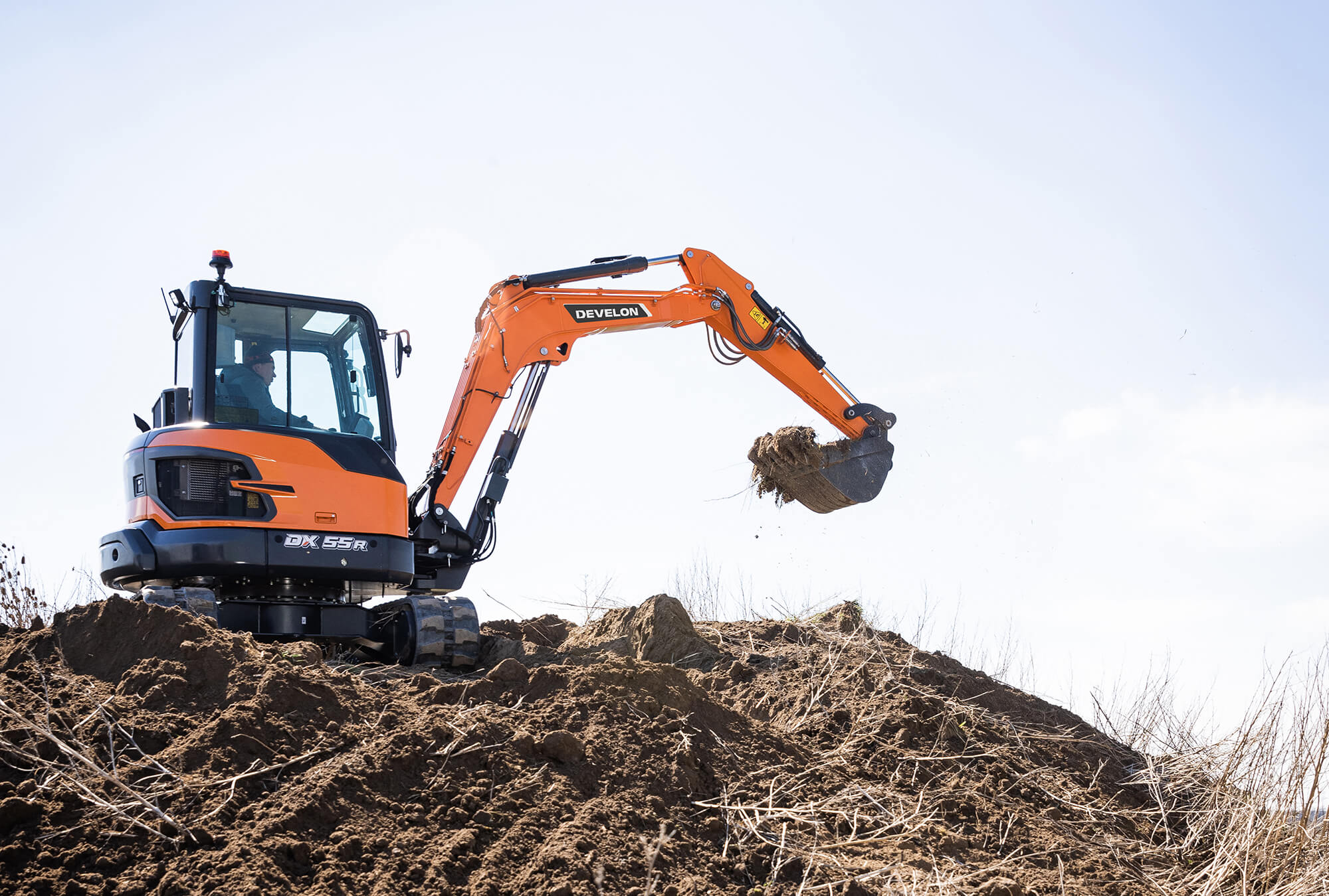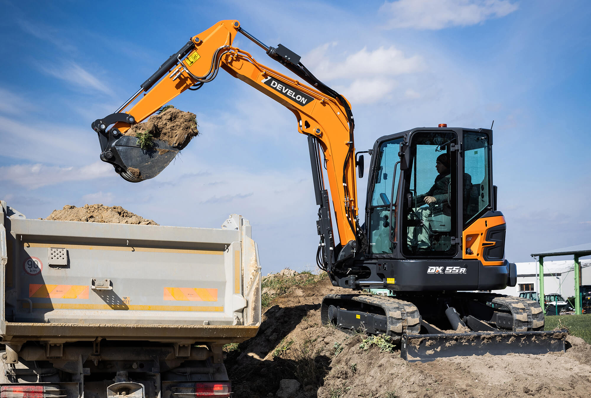 Heben Sie Ihr Geschäft auf die nächste Stufe mit dem Bagger DX55R-7 von Develon. Der Bagger DX55R-7 ist außerordentlich leistungsstark, produktiv und umweltfreundlich und zeichnet sich durch eine außergewöhnliche Kraftstoffeffizienz aus.
