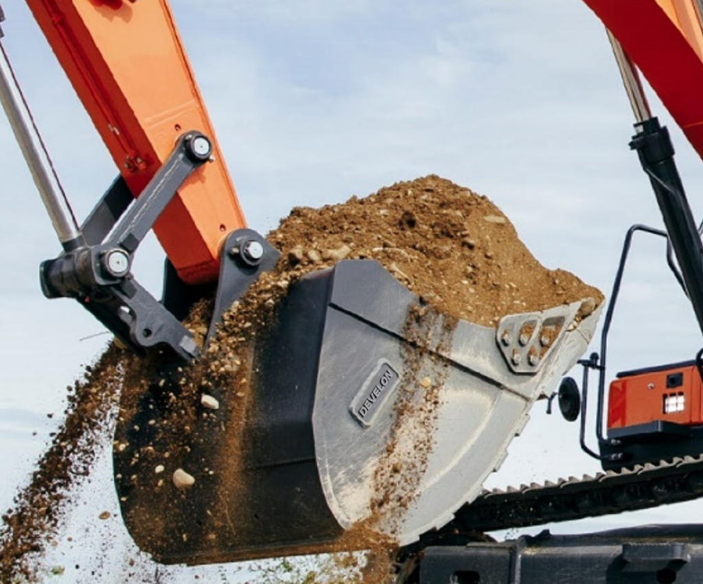 Wir stellen vor: der H-Klasse (Heavy Duty)-Standardlöffel, ein ultimatives Baggeranbaugerät, das mit einer rautenförmig geformten Sektion an der Löffeloberseite auf Stabilität ausgelegt und aus hochwertigen Materialien gefertigt ist. Dank optimierter Seitenschneiderformen, gegossenem Eckenschutz, echten Develon Heavy Duty (HD)-Zähnen und HB400-500-Stahl an Klinge und Verschleißteilen überzeugen sie durch ein außergewöhnliches Eindringvermögen sowie eine hohe Verschleißfestigkeit. Wählen Sie aus einem beeindruckenden Sortiment von 47 verschiedenen Modellen, geeignet für Bagger von 14 bis 80 t.
